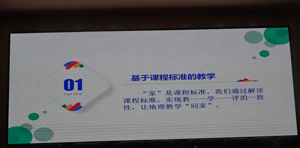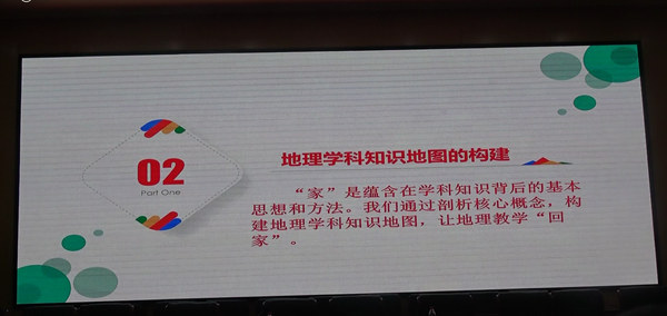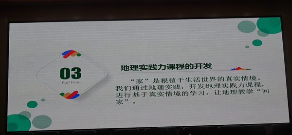 在报告中赵丽霞老师基于现阶段教育教学中存在的问题剖析学科核心素养通过团队合作研讨,提出了“基于课程标准的教学”、“地理学科知识地图的构建”、“地理实践力课程的开发”三条让地理教学“回家”的路。教研员陈卫东老师对该报告进行了点评,勉励各校教师向优秀学习,向先进学习,以提高自我。