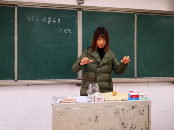 其中,赵天西老师运用对比举例引入了加速度这节的新课;石雨凤老师通过鸡蛋落地的实验有效激发了学生的兴趣,并且首尾呼应;卢鑫、肖珊老师的讲解过程思路清晰,板书规范;郭杉老师向我们展现了很强的语言功底及逻辑思维能力,授课熟练老道;杜彦阳老师引入的很有新意,通过具体的例子让每位学生真实感受到了静摩擦力的存在;董莹波老师则通过实验演示做到了《共点力的平衡》的难点突破。