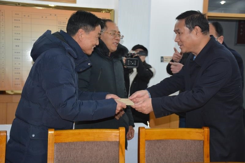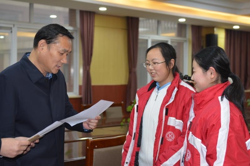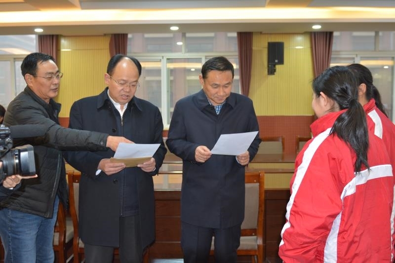 岁末年终,春节将至,1月30日下午,带着对基层学校困难教师及学生的关爱,市政府副市长郑中华及市教育体育局党组书记、局长娄和彦一行代表上级走访慰问我校优秀教师代表刘宪生、李林生及优秀学生代表尹嘉奕、李金婷,带来党和政府的关怀与温暖,并提前恭贺新春。