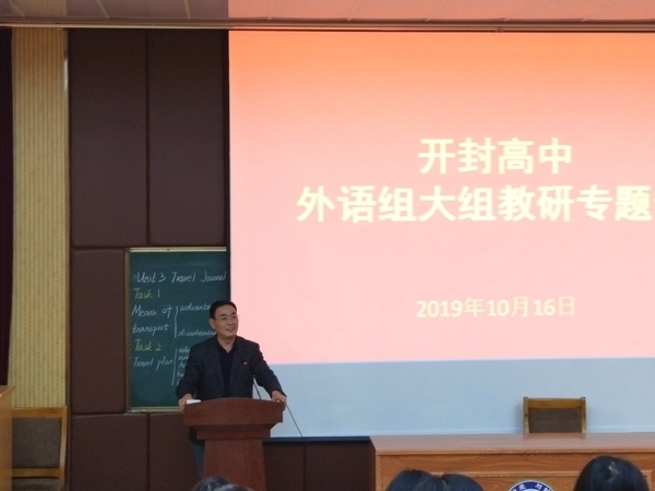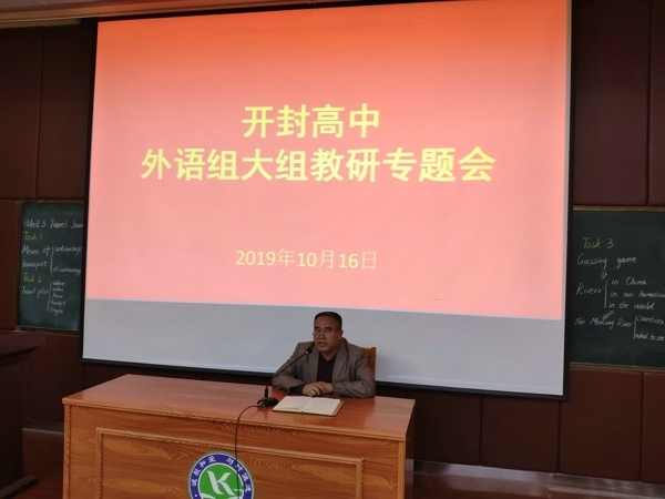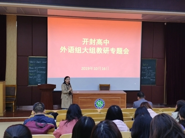 10月16日下午2:30,开封高中英语组全体教师在开封高中东校区西报告厅进行本学期首次大组教研,开封高中校长顾伯宇、副校长李振华莅临本次会议进行指导,邢晓楠老师主持会议。