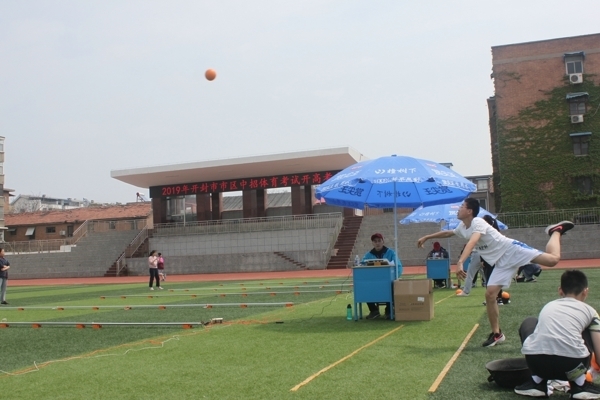 风和日丽,春风送暖,开封市中招体育考试4月10日在我校东校区运动场举行。今年评分标准相比往年有所改动,考试成绩满分仍为70分,按考生实际考试得分计入升学考试总分。项目仍然分素质类和技能类两大类。素质类项目仍然是必考内容,包括1000米跑(男)、800米跑(女)、立定跳远和双手正面掷实心球。技能类项目仍然是选考内容,包括足球运球、篮球运球、1分钟跳绳,考生可从这3个项目中任意选择一项参加考试。