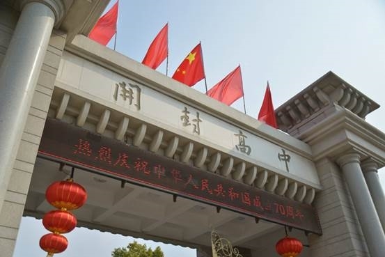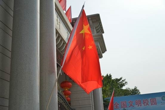 开封高中在学校大门上方及两旁都悬挂了国旗,鲜艳的五星红旗随风飘扬,令人振奋。科技楼前,旗杆上的国旗在蓝天的映衬下,也显得格外鲜艳。学校门口和科技楼的电子屏也为祖国庆贺:“热烈庆祝中华人民共和国成立70周年”,象征中国节日文化的红灯笼悬挂两旁更让人心生暖意。学校大门口的绿植充满生机,就像我们的祖国在不断强盛,带给我们希望!祝愿我们的国家越来越强大,我们的人民越来越幸福!(摄影:郝超男 审核:李建威)