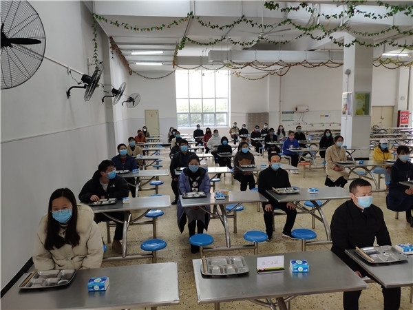 为把好“就餐关”,全体“学生”坚持固定方向、固定座位、固定时间错峰就餐,按照“以班级为单位戴口罩排队进入餐厅—餐前洗手消毒—直接对号入座就餐—戴口罩将餐具送至回收处—餐后洗手消毒——有序离开餐厅”的流程有序就餐。整个过程全部单向路线,人与人保持1米距离,避免人员拥挤。