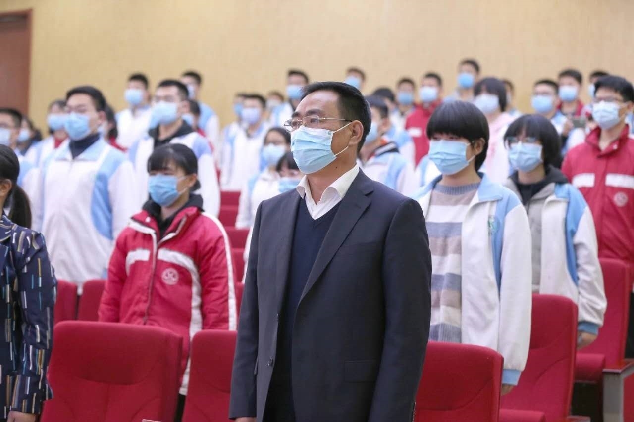 随后,学生会主席宋雨洋同学进行了发言。作为优秀学生代表,宋雨洋同学号召大家遵守特殊时期学校的各项规定,积极配合各项检测,同时也要做好个人的健康防护;此外,宋雨阳还提到了距离高考还有90天的时间,希望大家一起奋斗,充实的度过这三个月,助力母校再创辉煌!