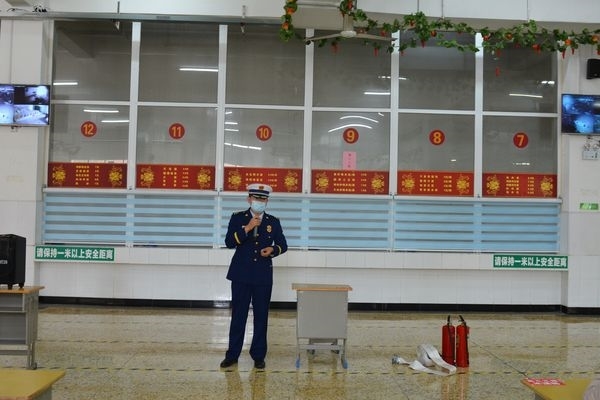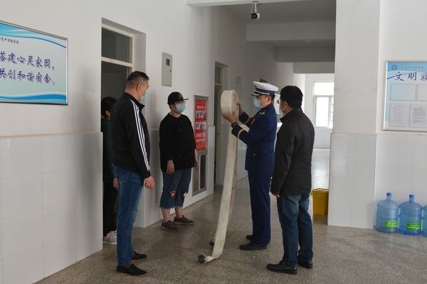 李参谋分别从火灾隐患检查、初期火灾扑救、消火栓使用方法、灭火器使用方法等内容对消防重点部门员工进行了细致的讲解。李参谋用“提、拔、握、压”等简练的语言来讲解灭火器使用方法,取得了良好的学习效果。培训后,李参谋对食堂灶间、消防控制室、消防泵房和高一宿舍楼进行了安全检查。在高一宿舍楼,宿舍管理人员当场进行了消火栓的实操演练。
