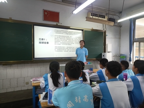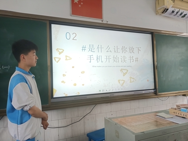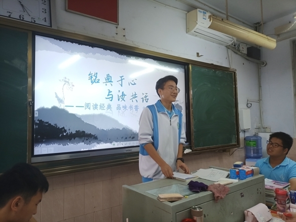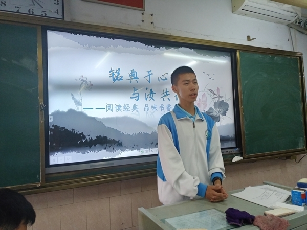 班会开始,各班主持人以各色各样,生动有趣的图片和视频向大家展示读书的重要性和必要性。接着各班挑选数名同学向大家分享自己读过的书籍,各位同学对书籍的介绍娓娓道来,引人入胜。其中2212班李宜展同学给大家分享了刘慈欣的科幻著作《三体3:死神永生》,此书通过细节的描写生动呈现了在失根状态下的漂泊流浪之中,人类个体与集体的无助和困境之中的惊恐不安。同时他建议大家不能只读自己喜欢的书,还应读些能挑战自己的书,不断锤炼自己,完善自己。同学们深受启发,纷纷凝神点头。
