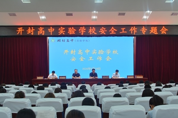 6月18日,开封高中实验学校安全工作专题会在校报告厅举行,全校教职工参加会议,开封高中校党委书记耿振勇,副校长宋全会,校务委员王新国在主席台就坐,会议由校务委员李沛主持。