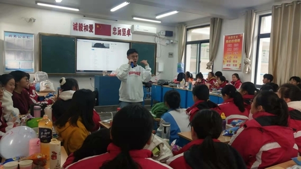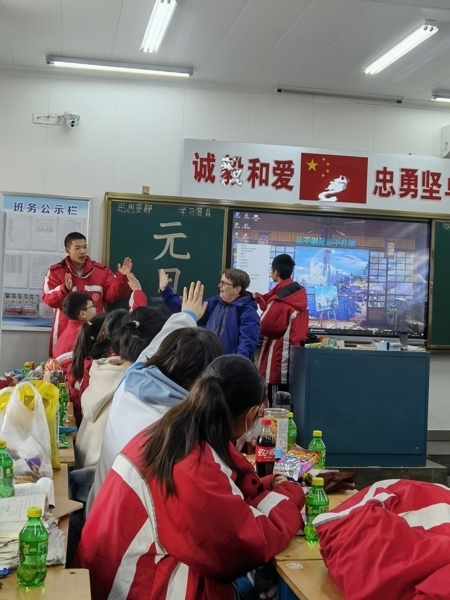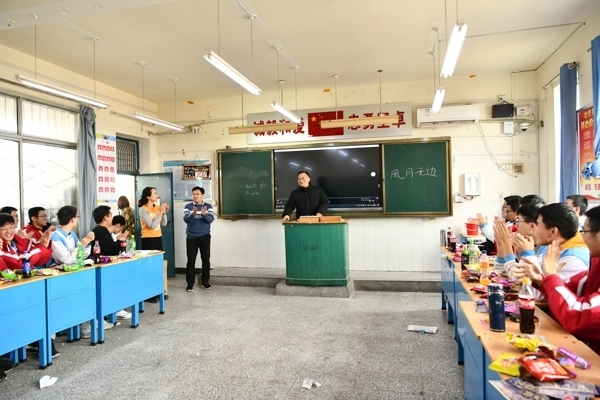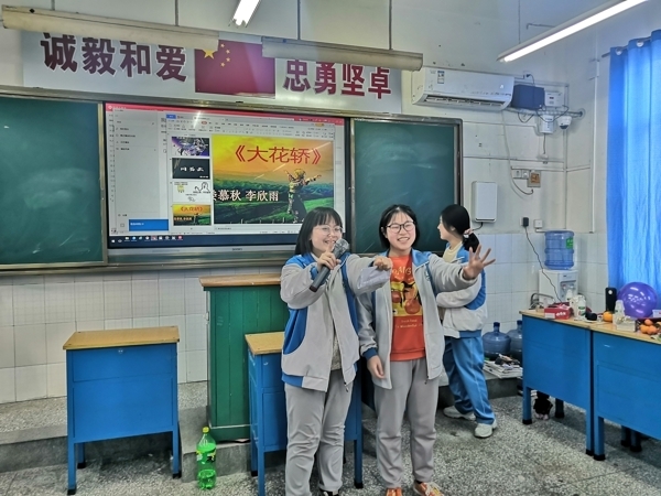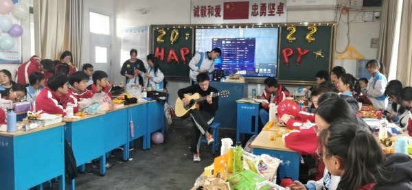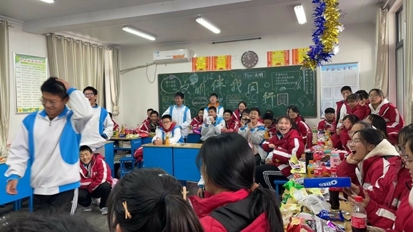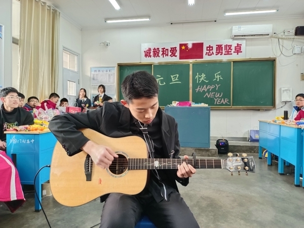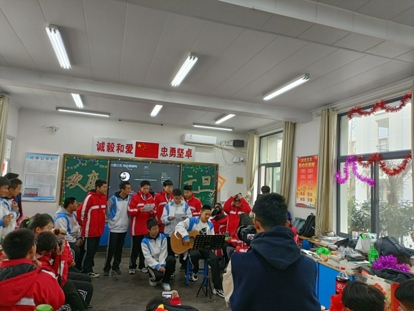 在班主任精心指导下,各班班委认真筹备,教室里挂满了五颜六色的气球和闪闪发光的彩带,黑板上“欢庆元旦”等醒目的大字、飘扬的气球、挥舞的彩带、喜悦的脸庞,营造了喜庆祥和的美好氛围。同学们精心准备,纷纷献上丰富多彩、积极向上的节目,有歌曲、舞蹈、相声、小品、歌词秀、游戏等,形式多样,精彩纷呈,处处洋溢着对新年的美好祝福和期待。精彩的节目让人应接不暇,充分展现了开高学子的艺术才能,往常安静的校园此刻变成了欢乐的海洋。在同学们的盛情邀请下,班主任和任课教师也纷纷亮出自己的拿手“绝活”,更是将欢乐的气氛推向高潮。