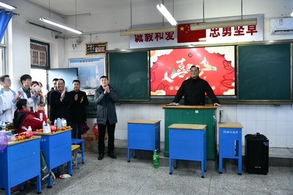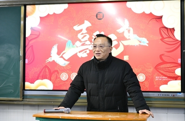 学校领导班子在校长宋全会的带领下,到各班进行新年团拜,为全校同学送上最美好的祝愿。
