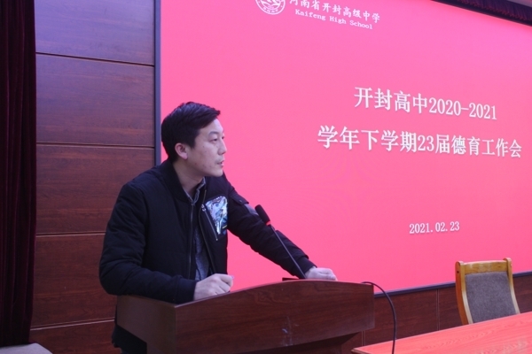 2月23日下午4点,开封高中在东报告厅召开了2020-2021学年下学期23届德育工作会。学生处主任苗森,副主任张辰贝,2023届年级主任赵向东,年级副主任王海动及各班班主任参与会议。会议由学生处主任苗森主持。