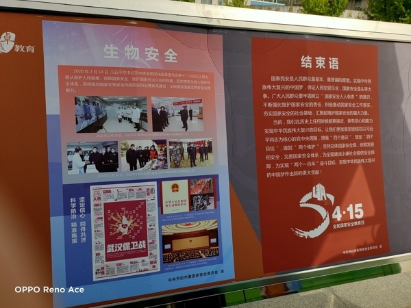 4月15日是国家安全教育日,根据市教育局关于全省教育系统全民国家安全教育日主题宣传教育活动的要求,我校开展了国家安全教育日主题宣传系列活动,内容包括:国家安全教育主题板报评比活动及《国家安全我有责》主题班会课活动、国旗下讲话、版面宣传、组织全校学生观看4月15日晚8时央视综合频道播放专题宣传片《护航之道--总体国家安全观纵横》等。