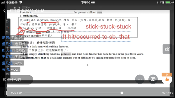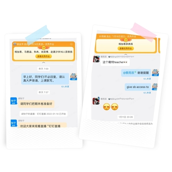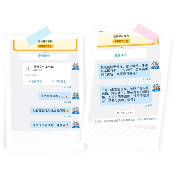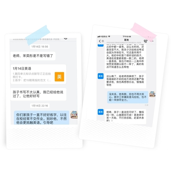 德国著名哲学家雅斯贝尔斯纳说过:“真正的教育,是一棵树撼动另一棵树,一片云推动另一片云,一个灵魂唤醒另一个灵魂。”虽然教学场所从教室变成了网上,但老师们依然通过不断的努力与尝试战胜各种挑战,在师生之间建立起知识的桥梁和关爱的纽带。对于老师们的倾囊相授和谆谆教诲,学生们在线上以图片或文字的形式给予了积极肯定的回应并在老师们的感染下刻苦努力、积极进取。师生拧成一股绳,取得了积极的学习效果,也赢得了家长们的好评。