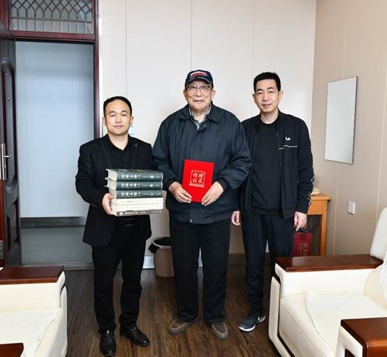 3月11日上午,开封高中1956届校友、原河南省文物考古研究所所长杨育彬来访母校并捐赠实物,开封高中校史办主任李建威、副主任何春生及工作人员热情招待。