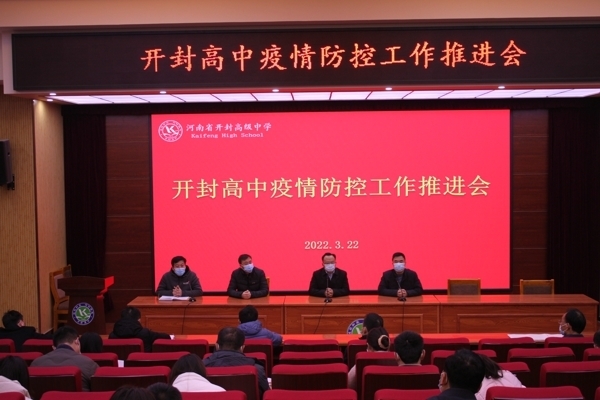 2022年3月22日上午,开封高中在报告厅举行了疫情防控工作推进会,开封高中校长宋全会、副校长尚嘉伟、纪委书记李小记出席会议,全体管理人员和班主任参加了会议。