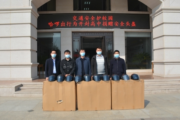 公司负责人表示,4月1日起,我市全面实行骑行电动自行车佩戴头盔的政策,为助力这项政策的落地,推进市民文明程度的提升,表达对教育事业的支持,哈啰出行特向开封高中捐赠爱心头盔100个,保障教职工的出行安全。