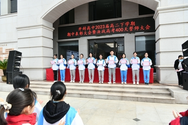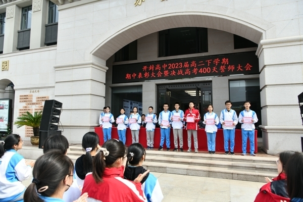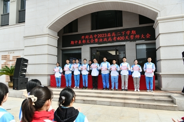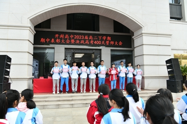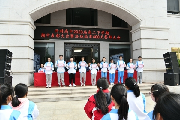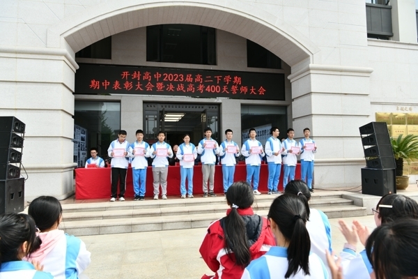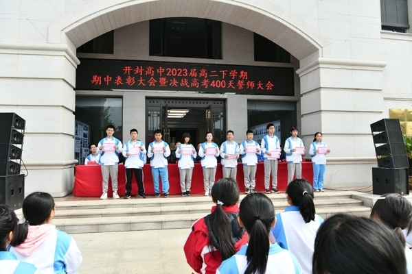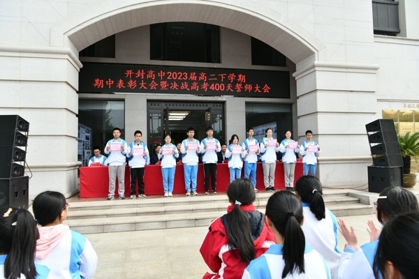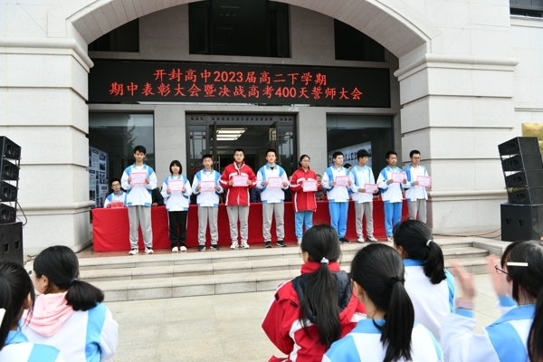为激励学习劲头,树立学习榜样,以更加饱满的热情、更加昂扬的斗志迎接一轮复习,4月29日上午,开封高中23届高二年级期中考试表彰大会暨决战高考400天誓师大会在学校办公楼广场举行。校长宋全会出席会议,校领导及部分中层领导参加。学生处副主任张辰贝主持会议。