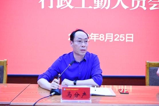 8月25日下午,开封高中行政工勤工作会在东报告厅举行,副校长马分产、纪委书记李小记出席会议,全体行政工勤人员参与会议。