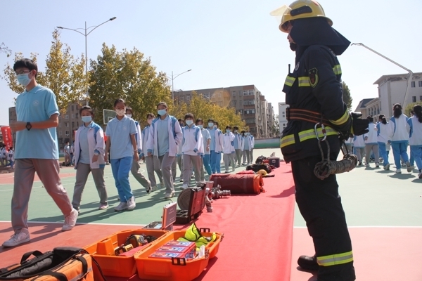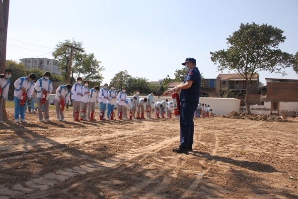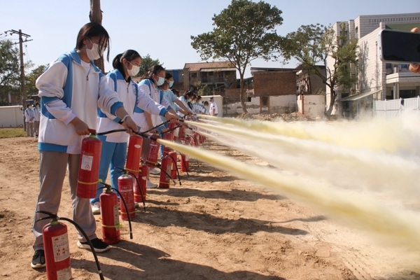13:10,学生处副主任张辰贝对全体班主任和处室人员做出具体要求和分工,并要求所有人员按时到达指定位置。13:20,张辰贝通过广播向同学们传达火警信息和疏散指令,同学们迅速从教室进行撤离。过程中,同学们严肃、有序按要求撤离“火灾”现场。各指定位置工作人员按照预先指定的路线疏散学生,确保学生的安全,避免出现拥挤或踩踏事件。学生们第一时间到达操场之后,各班由班长报告人数。苗森对本次疏散演练进行总结,他对同学们在疏散演练过程中的表现提出了表扬,也指出了同学们在清点人数过程中的细节问题。尚嘉伟对本次演练进行讲评。他指出,本次演练对同学们来说意义重大,每一位同学都应该有安全意识,珍惜生命。随后,同学们在统一组织下,参观了由开封市禹王台区消防大队带来的各类消防设备设施,并由专业人员向同学们做了详细的讲解。最后,同学们有序对灭火器的使用进行实际的操作。