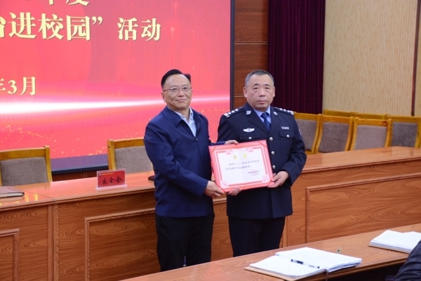 宋全会代表开封高中向王丰颁发聘任证书,聘任王丰同志为开封高中“法治副校长”。
