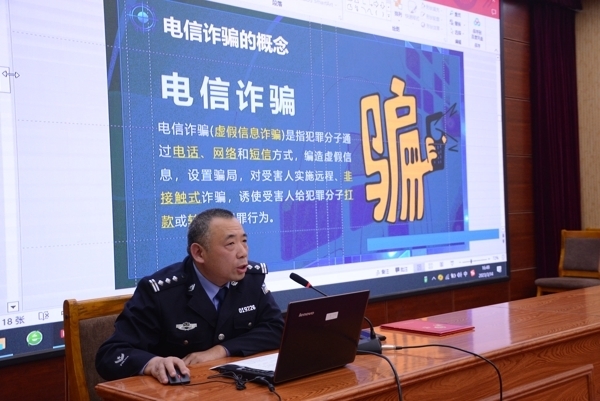 王丰通过丰富的案例和详尽的分析指导面向师生和安全管理人员进行了别开生面的法治讲座。讲座通过师生家长身边的例子,详尽剖析,深入浅出,对扫黑除恶、反校园欺凌、反电信诈骗等校园法治热点进行了讲解。生动精彩的讲座引来了师生的阵阵掌声。