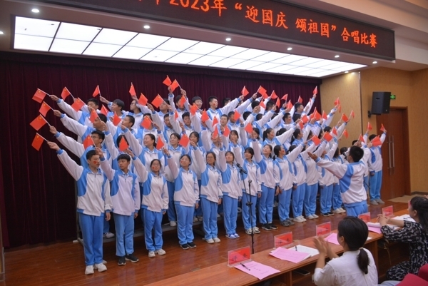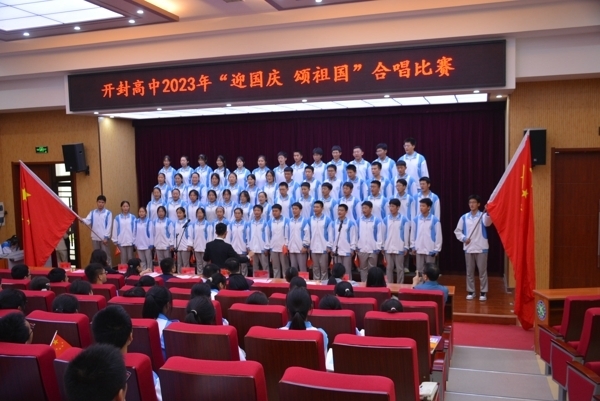 本次比赛每个班级有两首参赛曲目,一首规定曲目《我们是开封高中人》,一首自选曲目。同学们以朝气蓬勃的青春风采、嘹亮深情的歌声迎接祖国的生日。一首《保卫黄河》,节奏起伏铿锵有力,气势磅礴的合唱赢得了现场阵阵热烈的掌声;《共筑中国梦》唱出了同学们对祖国未来充满希望的美好心声;熟悉的《我和我的祖国》;耳熟能详的《歌唱祖国》;广为传唱的《少年中国说》……一曲曲历久弥新的爱国歌曲,跌宕激昂,催人奋进。同学们激情高涨,台上歌声铿锵有力,台下观众掌声不断,在放声歌唱中,大家赞美祖国、歌唱共产党,不仅唱出了对党、祖国的赤诚之心,也用歌声追寻信仰的力量,诠释青春的誓言。