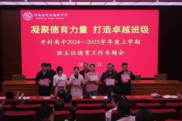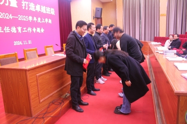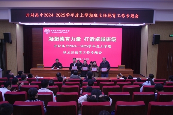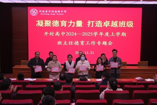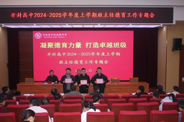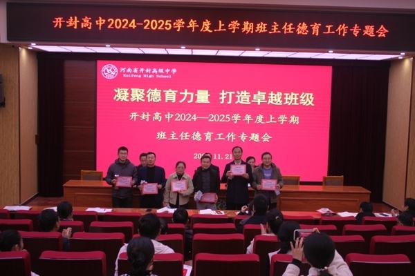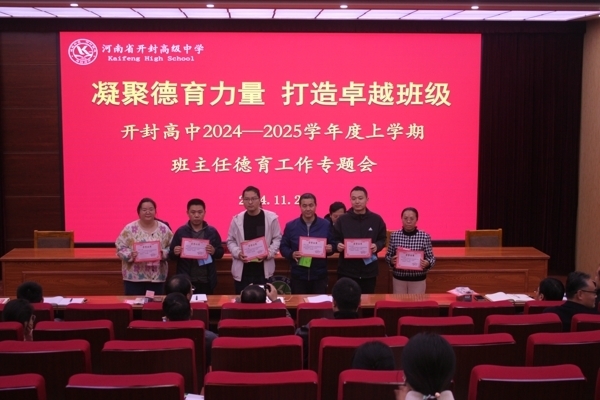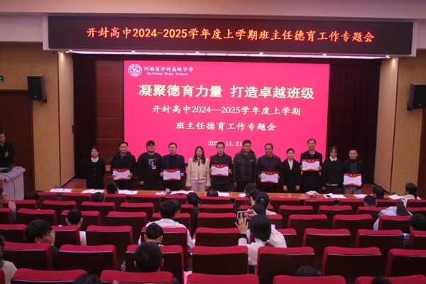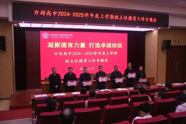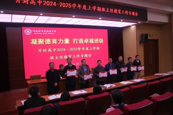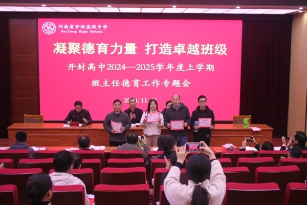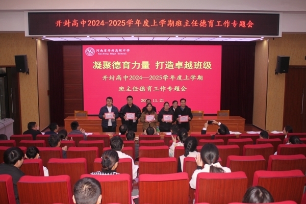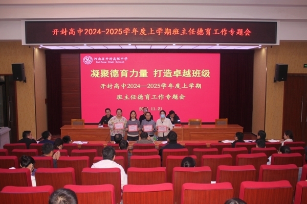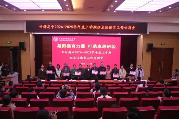 学无境弦歌不辍,行有道芳华待灼。为加强班主任队伍的建设,搭建班主任成长平台,推动班主任专业化成长,切实增强班主任职业认同感、荣誉感、责任感,提高班级管理质量,提升团队凝聚力,不断提高德育工作水平,开封高中于11月21日下午,在东报告厅召开2024-2025学年上学期班主任德育工作专题会。副校长房建云,学生处副主任张辰贝、吴杰,年级主任和全体班主任参与会议,会议由吴杰主持。