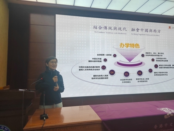 晚上,朱教授再次为高三家长们带来香港中文大学的招生宣讲。她详细地阐述了学校的招生政策、专业设置、校园文化以及未来发展前景等各个方面,让家长们对这所高校有了全面且深入的认识。其间,优秀毕业生家长唐君阳爸爸也上台分享,他以质朴的语言和真挚的情感,从生活的细微之处入手,讲述了孩子在成长过程中的点点滴滴,以及作为家长在背后默默付出与支持的心得感悟,为其他家长们提供了宝贵的借鉴经验,使家长们更加直观地感受到香港中文大学对学生成长的助力与影响。