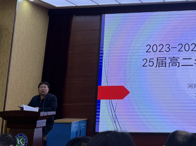 善总结者得其智,善分析者得其谋。为提升学校教育教学质量,发现问题,总结经验。3月27日下午,开封高中东校区25届在东报告厅召开高二年级质量分析会。开封高中副校长张志强,教务处主任周金陈,年级主任黄涛及25届全体教师参加会议。本次会议由周金陈主持。