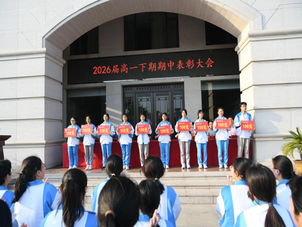 为表彰先进,树立榜样,总结经验,鼓舞斗志,营造积极向上的学习氛围,开封高中于5月10日举行了2026届高一年级下学期期中考试表彰大会。副校长张志强、纪委书记李小记、校务委员娄渊中、荣海洋、教务处主任周金陈、纪检监察室主任王双虎、学生处副主任吴杰、高一年级主任赵向东出席会议,高一全体班主任和学生参会,会议由年级副主任周江松主持。