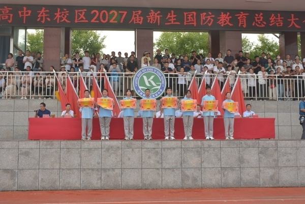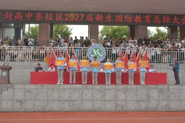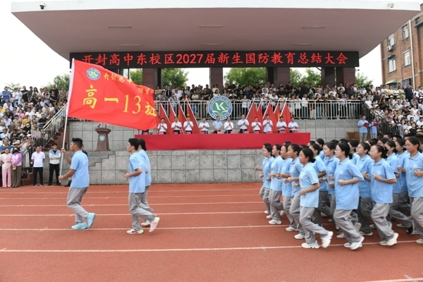 旌旗翻卷,雄姿浩荡。七日鏖战勇争先,今朝沙场把名扬。8月17日上午,开封高中东校区2027届新生国防教育总结大会在学校操场隆重举行。开封高中书记宋全会,党委副书记、校长马分产,副校长尚嘉伟,副校长张志强,纪委书记李小记,副校长房建云,校务委员娄渊中、李沛、荣海洋,东校区年级主任陈其龙出席本次大会。千余名新生家长应邀观摩了汇报表演。大会由学生处副主任吴杰主持。