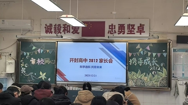飞雪送冬意,携行暖人心。为凝聚育人合力、助力高一学生顺利适应高中学习生活、科学规划学业发展,开封高中东校区2028届于12月21日下午在各班教室召开本学期家校交流会。交流会聚焦育人理念、选科指导与家校协作三大主题,内容详实、节奏紧凑,会议由开封高中28届年级主任袁泉主持。