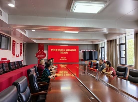 8月4日上午,中国科学院大学河南招生组刘新春教授一行专程回访母校开封高中,并代表国科大向学校赠送锦旗。锦旗上,“人才基地,精英摇篮”八个字,不仅承载着他对母校培育之恩的感激,更是对母校卓越人才培养成果的高度赞誉。刘新春教授是开封高中1986届杰出校友,在学术领域成就斐然,此次回访母校,饱含着他对母校的深厚情谊。