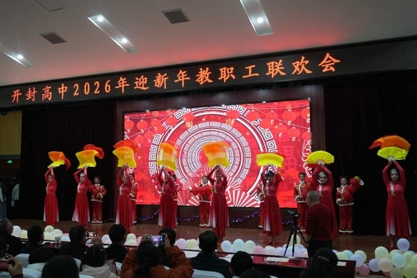 四季新元旦,万寿初春朝,时序转佳节,历添新岁月。我们在时间的轴系上,生生不息,承百年古韵育桃李,曾铺展锦绣千重;自强不息,传木铎金声奏弦歌,必将续写华彩万章。共辞旧岁,同贺新年,以歌舞寄情,以欢笑表意,12月31日下午,开封高中2026年教职工新年联欢会在西校区报告厅璀璨启幕。全体教职工欢聚一堂,在流光溢彩中回望耕耘岁月,在凝心聚力中奔赴教育新程。