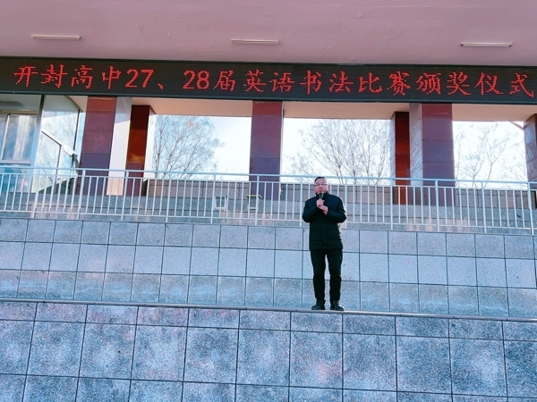 最终,高一、高二年级分别评选出特等奖10名、一等奖20名、二等奖30名。1月7日学校隆重举行表彰仪式,仪式由高二年级副主任朱冰峰主持并宣布获奖名单。随后,开封高中副校长、东校区执行校长房建云,教务处副主任陈其龙为获特等奖及一等奖学生颁发荣誉奖状及奖品,房建云肯定了获奖学生在比赛中展现的严谨治学态度与卓越综合素养,鼓励全体学子以获奖同学为榜样,深耕书写练习,夯实学科基础。