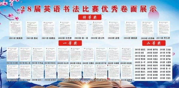 赛后评审环节秉持“公平、公正、公开”原则,严格执行“班级初选+评委遴选”双轨评审机制。全体英语教师组成专业评审团,依据统一的量化评分标准,从书写规范性、卷面美观度、艺术感染力等多个维度对参赛作品进行逐一审阅、细致打分、综合研判。