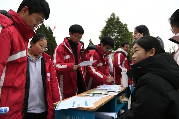 下午4时起,办公楼广场、东前楼广场与西前楼广场同步开展高校展位咨询活动。百余所高校展位前人头攒动,学生们手持咨询表,积极深入与学长学姐交流。展位分布清晰有序,从A01排到C03,覆盖全国各地名校,为同学们提供了全方位、多层次的升学资讯。不少同学表示:“这样的形式很直观,能一次性了解这么多学校,对我们规划未来特别有帮助。”