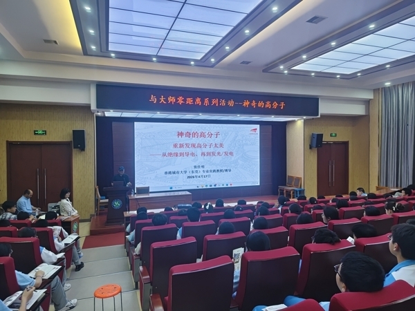 当日下午 5 时,学校 “与大师零距离” 系列活动如期举行。香港城市大学(东莞)张仕明教授带来题为《神奇的高分子 —— 从绝缘到导电再到发光发电》的科普讲座。张教授结合自身科研与产业经历,深入浅出讲解高分子材料的前沿应用,带领同学们领略材料科学与柔性电子的魅力,激发大家对科技创新的兴趣与探索热情。
