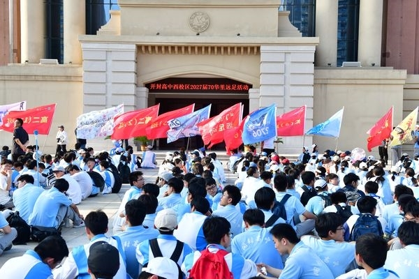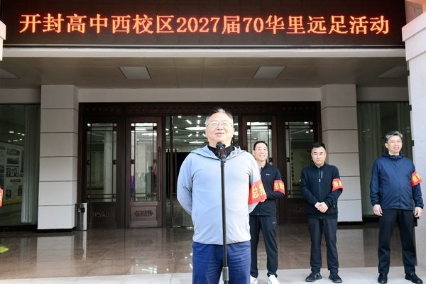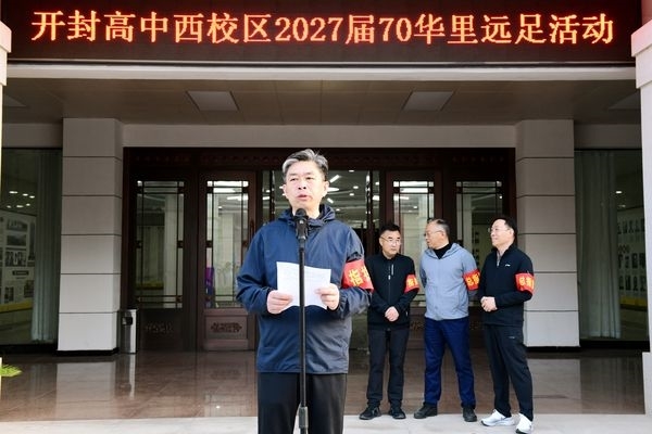 清晨六时十分,开封高中西校区 2027届全体师生齐聚办公楼广场,隆重举行 “寻根母亲河,溯源中华魂”远足出征仪式。仪式由西校区学生处副主任高龙主持,校务委员娄渊中作动员讲话。他寄语全体同学:远足以砺志,亲水以寻根,亲近自然、勇毅前行,心怀感恩、体悟成长,以昂扬姿态奔赴征程,为青春与学业筑牢根基。