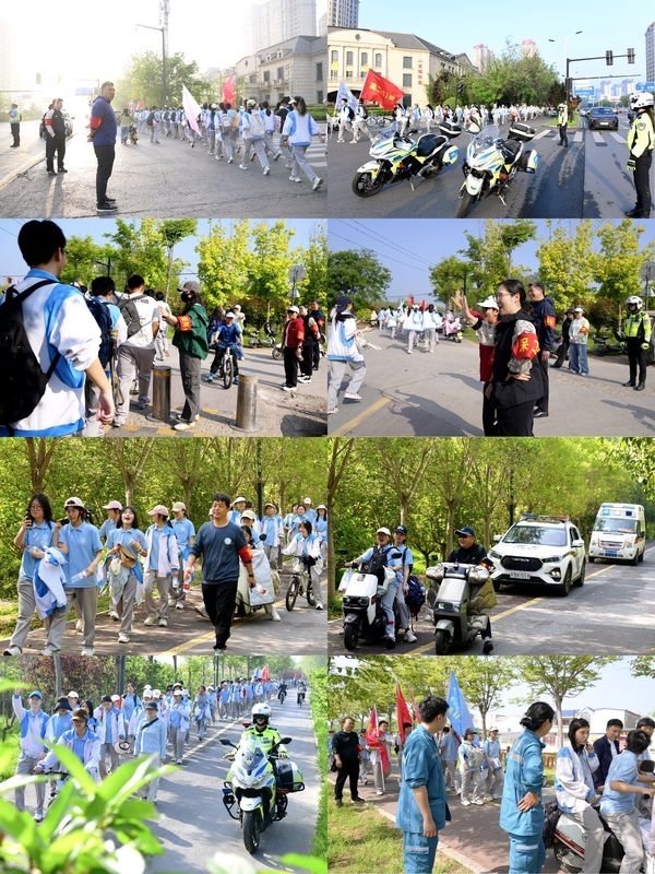 老师们全程陪伴在学子们身边,既是守护成长的坚实后盾,也是并肩同行的亲密伙伴。他们一路嘘寒问暖,密切关注着每一位同学的身体状态,用温柔的陪伴给予力量,用真诚的鼓励温暖人心。队伍中,嘹亮的励志口号、激昂的黄河赞歌、婉转的经典诗文诵读此起彼伏,清脆的声音回荡在黄河岸边,将青春的活力与朝气洒满了整条远足之路。同学们在行走中领略黄河之美、感悟家乡之韵,在相互陪伴中体会团结的力量、读懂坚持的可贵,用脚步丈量出属于自己的青春刻度,用实际行动诠释着新时代青年的责任与担当。