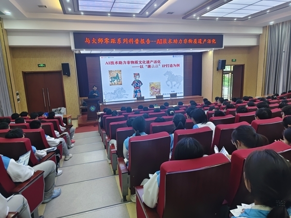 讲座中,王教授结合“唐骉骉”IP 打造实践,深入浅出讲解人工智能如何为传统文化注入新活力,用前沿科技唤醒非遗瑰宝,展现科技与人文交融的独特魅力。现场师生认真聆听、积极互动,在前沿知识与文化传承的碰撞中拓宽视野、激发思考。