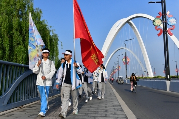 一路春风相伴,一路风光随行。学子们满怀对黄河的敬畏与对自我的挑战,步履坚定、列队前行,成为春日晨光里一道靓丽的风景线。行百里路,悟万卷书,此次远足跳出课堂边界,打造沉浸式行走实践课堂。沿途城市风貌与黄河生态廊道美景相融,草木葱茏、风光壮阔,春日黄河盛景尽收眼底。