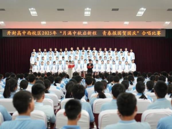 查看详情金秋送爽,丹桂飘香,在中秋团圆与国庆华诞双节同庆的美好时节,2025 年 9 月 30 日下午,开封高中西校区隆重举办 “月满中秋启新程 青春报国贺国庆”合唱比赛。校务委员娄渊中、办公室主任马珂、教务处主任张晋波、学生处主任高彦磊、教务处副主任刘冉、学生处副主任高龙莅临现场,共同见证这场充满热血与激情的视听盛宴。娄渊中致开幕词,比赛在马珂和2606班张煜函同学的《我爱你中国》中拉开帷幕。2028届