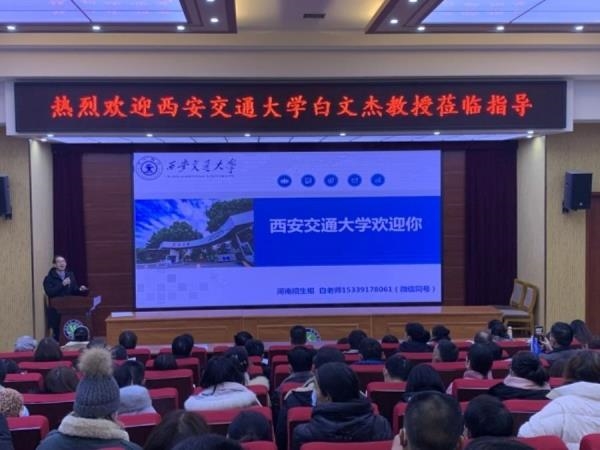 2020年12月10日,西安交通大学河南招生组副组长白文杰教授莅临我校,督导室主任苏新明进行了接待。晚上7点整,在开封高中东报告厅,家长座无虚席,高校宣传报告会准时开始。会议由苏新明主持,他首先为家长介绍了尊贵的嘉宾,并简单地介绍了这所知名高校——西安交通大学,最后把时间留给了白文杰教授,来为家长做更详细地介绍。白教授首先宣读了开封高中优秀学子考入西交大及获得奖学金的喜报,接着,就家长关心的报考问