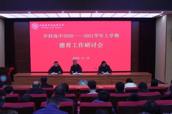 为更好地开展年级和班级管理工作,2020年12月10日下午,开封高中东校区召开班主任德育研讨会,主管副校长李振华到会并讲话,参会的还有学生处主任苗森、副主任张辰贝以及三个年级全体班主任,会议由苗森主持。张辰贝首先发言,他着重讲了本学期开学以来的纪律情况,包括住校生请假问题、体育课请假问题、学生操行档案的完善问题以及学生理想信念生命教育问题等。苗森对德育工作和学生管理工作做了补充,并对近期学生德育活