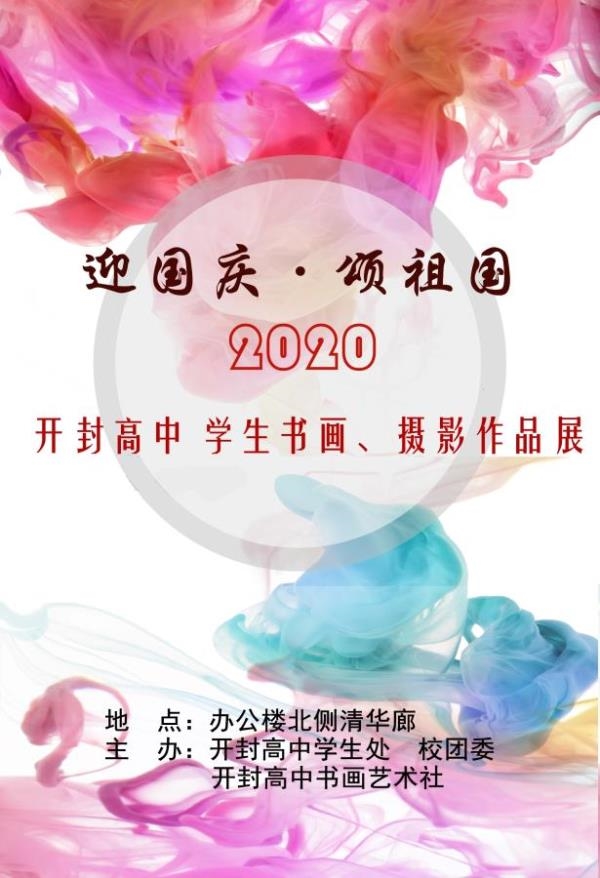 翰墨寄情书盛世 丹青流彩绘华章。双节将至,为歌颂伟大祖国,建设美丽开高,共创文明校园,展现我校素质教育的丰硕成果,开封高中书画艺术社特决定举办学生书画、摄影作品展。 书以言志,画为心声。学生处于成长的关键阶段,每件美术作品都记载着他们成长中的所感、所思、所想,将这些集合起来,就是一幅青春洋溢的美好图卷。本次展览包含了水粉、水彩、漫画、书法、摄影等不同类型的作品,每一件作品都凝结着创作者的智