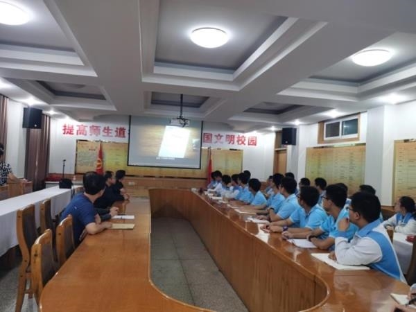 9月25日下午,河大优秀毕业生到我校参加教育实习的欢迎仪式在开封高中东校区举行。河南大学文学院语文教育教研室主任、博士生导师杨亮教授,开封高中副校长乔国颖、校务委员荣海洋、督导室主任苏新明、语文教研组组长任莹、全体语文老师以及河南大学文学院三十名实习生和十五名研究生参加了会议。会议由荣海洋主持。荣海洋告诉参加实习的同学们,河南大学和开封高中都是河南名校,都有着百年的人文积淀,具有深厚的历史底蕴,两