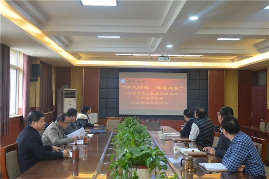 为认真落实上级关于在“不忘初心、牢记使命”主题教育中加强爱国主义、弘扬爱国主义精神的重要指示,2019年11月27日、29日,我校东西校区分别组织中层以上党员干部参观“伟大历程 辉煌成就——庆祝中华人民共和国成立70周年大型成就展”。在综合办马珂副主任的操作和介绍下,党员们通过网络完成了网上展馆参观,展馆里一张张清晰珍贵的图片,一篇篇精炼准确的文字,一个个铭记历史的视频,都给人留下了深刻的印象,每位参观者都