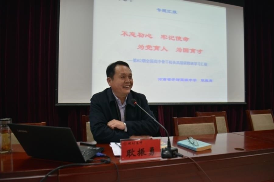 按照开封高中“不忘初心、牢记使命”主题教育工作安排,11月14日下午,党委书记耿振勇同志在报告厅给全体教师上了一堂生动而深刻的党课,党课标题为《不忘初心、牢记使命、为党育人、为国育才》。耿书记首先跟大家分享了他在上海参加第62期全国高中骨干校长高级研修班学习的收获和感悟。他用大量的数据和形象的图片为大家展示了学习内容。大家感到耳目一新,受益匪浅。接着,结合学校实际和近期创文工作,耿书记讲到了他的办