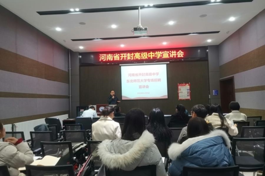 按照学校人事发展规划,在开封高中教师招聘工作领导小组的安排下,11月9日,副校长李振华、校务委员李沛、党办副主任李建威、西校区2022届年级主任张晋波在东北师范大学举行公费师范生专场招聘会。李建威就历史沿革、学校现状、知名校友、办学成绩、福利待遇等方面向与会毕业生介绍学校基本情况,李振华就如何做一名优秀教师和毕业生进行深入交流,张晋波就青年教师的发展现状向毕业生简要介绍我校青年教师取得的成绩。几位