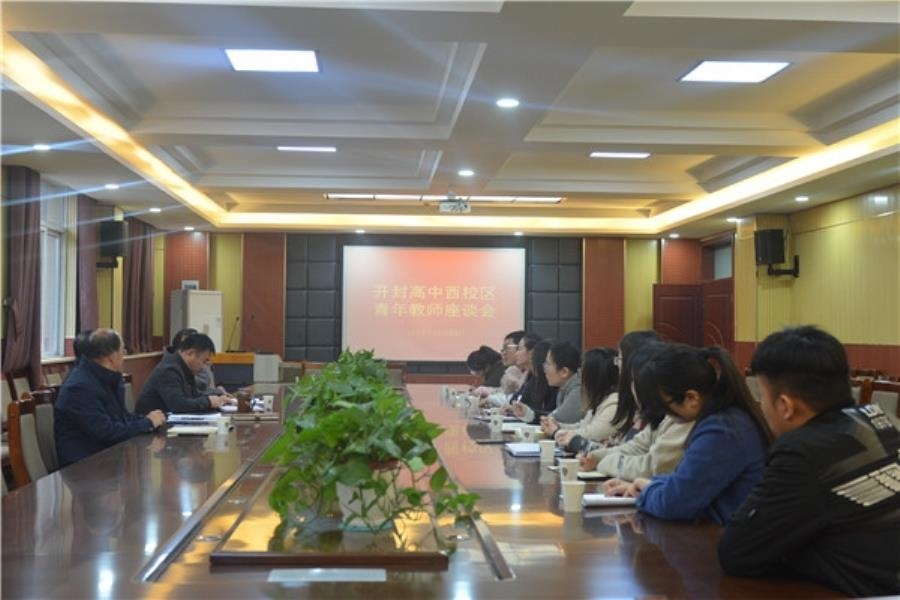 2019年11月20日下午,在办公楼三楼会议室召开了开封高中西校区青年教师座谈会。副校长尚嘉伟,校务委员王新国,师训处主任毛广文,2022届年级主任张晋波出席会议。青年教师首先做了简短的自我介绍,并对近期的工作情况进行了简短的汇报与交流。师训处主任毛广文对青年教师的教学工作与生活表达了关心,并传达了学校督导组对青年教师课堂教学所反馈的意见与建议,指出了青年教师在课堂教学上所存在的一些优点与仍需改进之处。2022届